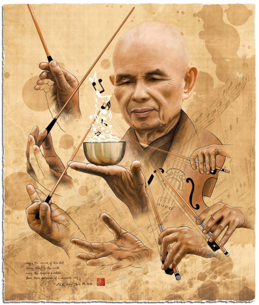 Tijdens de oorlog in Vietnam organiseerde hij samen met andere monniken, nonnen en leken-beoefenaars op grote schaal hulpacties voor de getroffen bevolking in de door bombardementen verwoeste dorpen. Mindfulness gaf hun de kracht om met al het lijden om hen heen om te gaan.